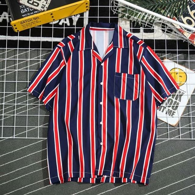 Summer Wear Stripes Shirt Short Sleeve Outer Wear Shirt Tone Red Blue White Yellow Swag Dope Beach Beachwear Shopee Malaysia